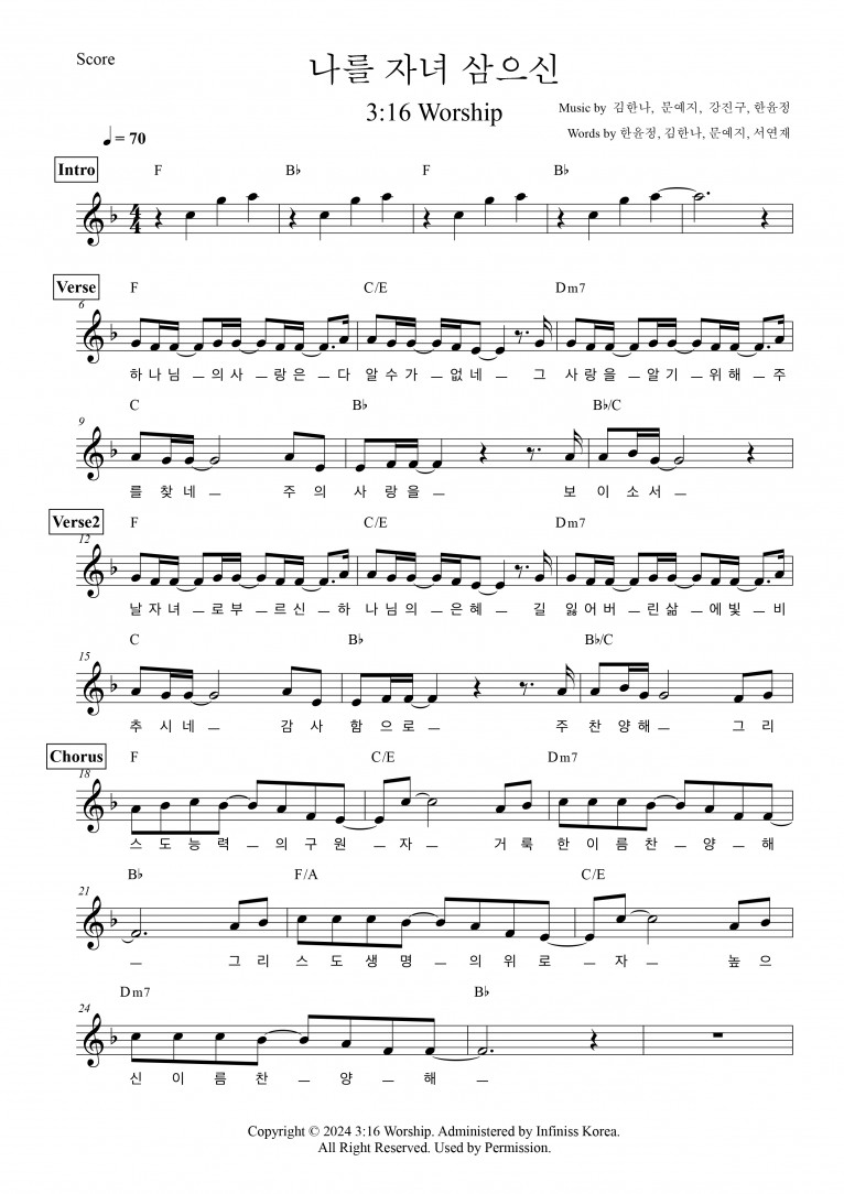 뮤직타임 [악보 & MV] 나를 자녀 삼으신 - 3:16 Worship